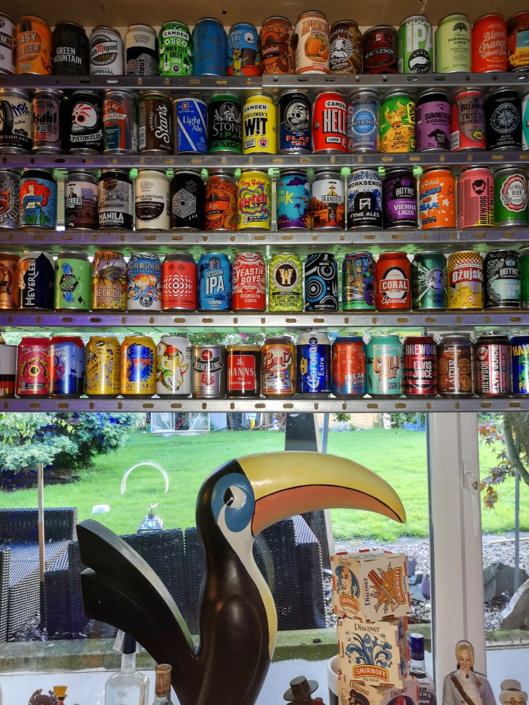 Shout out to Jack for his hosting (you may also recognise him as the lovely model for the Collabs & Creatives page circa the homepage). Our venue for the night was his shed; a blue lit garage with walls dedicated to beer and vodka from around the world collected over an undefined number of years. There’s a real “the more you stare, the more you see” feeling to the shed. It’s like rewatching a Christopher Nolan film in that every time you pay attention, you notice something new. Whether it’s the glassware collection, or the fact that the actual functioning urinal is made from a former keg. His shed has been converted into a museum of beer and assorted spirits, and a testament of self-control and restraint that it all remains unopened.